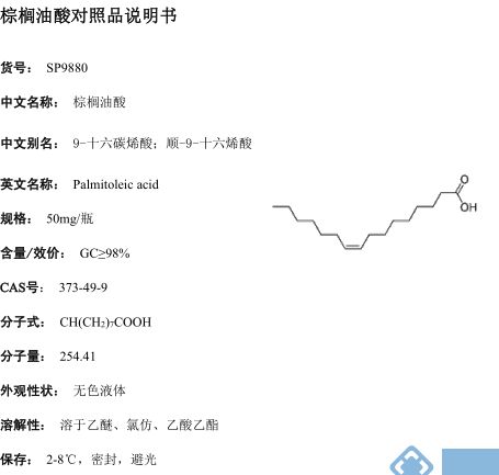 产品名称: 棕榈油酸/9-十六碳烯酸